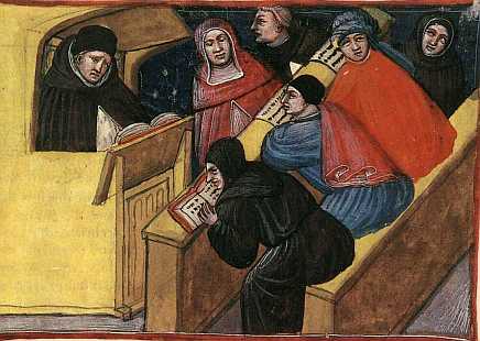 UNIVERSITÄT Durch die Kloster- und Kathedralschulen übte die Kirche ein Bildungs- und Wissensmonopol aus (Le Goff 1986). Der verarmte Adel und das neureiche Bürgertum bildeten eine Allianz, wie sie bereits Andreas Cappellanus in De amore (12. Jh.) beschreibt. Ihr Einfluß führte zur Gründung der ersten von der Kirche unabhängigen Universitäten. Später kamen die Bettelorden in die Städte und bauten dort ihre Kirche – und ihre ersten Universitäten.